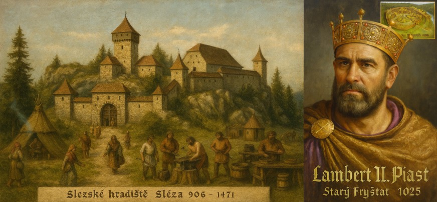 Prapravnuk krále Lamberta II., princ Vladislav II. Piast (1105-1163), 28. října roku 1138 vyčlenil pro sebe Slezské vévodství, ve kterém založil slezskou rodovou větev Piastovců. Jeho synové Boleslav I. Piast (1127-1201) a Mečislav IV. Piast (1141-1211), roku 1164 Slezské vévodství rozdělili na Dolní se sídlem v Lehnici, a Horní se sídlem v Ratiboři. Později se Hornoslezské sídlo přesunulo do Opole. Za vlády Mečislavova vnuka, Hornoslezského vévody Vladislava I. Piasta (1225-1285), docházelo ve spolupráci s českým králem Přemyslem Otakarem II. Přemyslovcem (1233-1278), k zakládání nových slezských měst a k transformaci původních Silingských hradišť na města. Fryštát tak dostal název Freistadt Orientale a jak uvádí fryštátský lékař a historik Julius Bayer, roku 1267, pravděpodobně ale nejdříve v roce 1269, se ve Fryštátě postavila první křesťanská kaple, kterou od 18. století nahrazuje dnešní kaple Andělů strážných ve Starém Městě. Do té doby fryštátští slezané uctívali silingskou (slezskou) mytologii a provozovali kult uctívání boha Slunce, jehož ústředí bylo na vrcholu pro Slezsko posvátné hory Sléza (-odtud také název Slezsko). Pokračování na podstránce "vévodský zámek"...