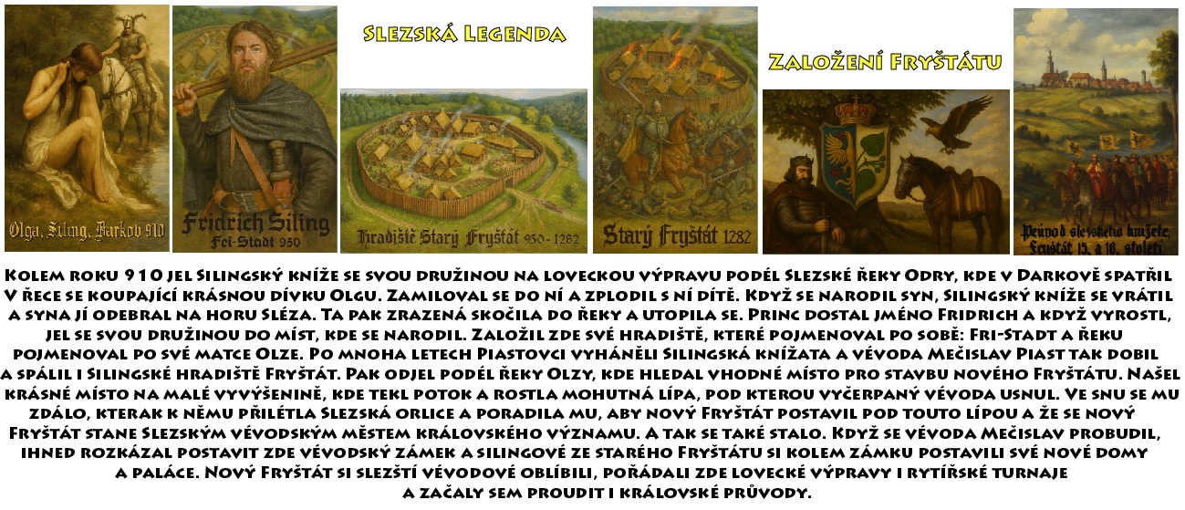 Slezský vévodský Fryštát je dnes oblíbeným místem setkávání milovníků historie, cyklo i pěších turistů, manažerů, studentů i lázeňských hostů. Odehrává se zde bohatý kulturní život a na jeho Zámeckém nádvoří a v přilehlých uličkách najdete na 20 gastro zařízení všech podob, chutí a vůní, včetně středověkého vévodského pivovaru. Zámeckému nádvoří, budovanému od 13. do 16. století, dodnes vévodí Bílá věž a několik dalších dominant slezských Piastovců, jejichž rod byl nejvyšší slezskou a českou aristokracií, byli zástupci císařů Svaté říše římské pro České království, zástupci českých králů pro Slezská vévodství, svého času jedinou českou panovnickou dynastií a především - byli slezskou vévodskou monarchií. Slezská vévodská města od Těšína po Hlohov spojuje hlavní slezský vodní tok Odra-Olza, který je lemován i hlavní silniční, a dnes i železniční slezskou tepnou, "Slezskou královskou cestou", kterou ve středověku proudila slezská vévodská historie. Fryštát byl její křižovatkou, proto zde najdete historii vskutku královskou.