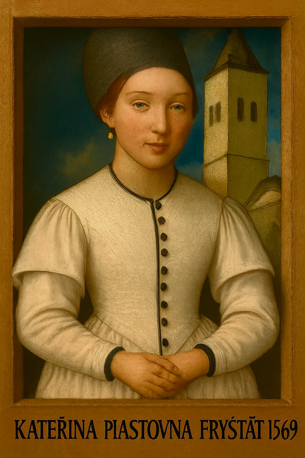 Její Milost slezská kněžna Kateřina Piastovna z Lehnické dynastie, byla postižená Bílým morem a v přízemních komnatách Bílé věže ji Jeho Milost slezský kníže Fridrich Kazimír Piastovec musel umístit do karantény. Přes všechnu péči ranhojičů však tady v roce 1569 zemřela a Jeho Milost kníže Fridrich Kazimír jí pohřbil v zámecké kryptě pod Jižní kaplí. Po celou dobu jejího pobytu v Bílé věži zvony ve věži nesměly zvonit a ve věžních komnatách ji kníže den co den navštěvoval i s malou princeznou Kateřinkou. Od doby, kdy tady Její Milost kněžna Kateřina zemřela, jsme věž začali považovat za fryštátskou zámeckou Bílou paní, protože nám věž připomínala postavu na smrt nemocné kněžny oděné do bílého šatu s knoflíky, s vysokým čepcem na hlavě a se svýma krásnýma velkýma očima, jak láskyplně objímá svou dceru, princeznu Kateřinku. Podívejte se na věž odspodu a sami uznejte, že při troše fantazie opravdu Bílá věž s dolní věžičkou tak může působit... Poprvé se zvony rozezněly po několikaměsíčním tichu až v den, kdy zde Její Milost kněžna Kateřina zemřela. Bylo to 3. září 1569. Do pietního smutku upadlo nejen Slezsko, ale celé České království, protože zesnula Její Milost slezská panovnice a nejvýše postavená česká aristokratka.