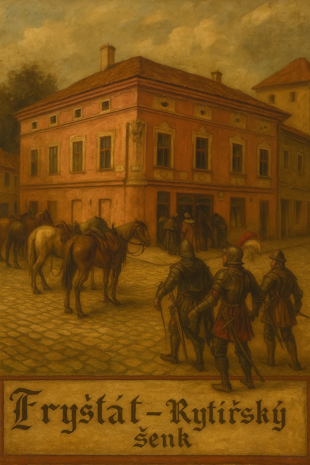 Na Předzámčí by jste v 15. a 16. století potkávali kromě zámeckých zbrojnošů střežících vstup do města, i nejvíce slavných rytířů. V té době byl Fryštát naším oblíbeným centrem, především proto, že na Fryštátském loveckém zámku trvale sídlil Jeho Milost slezský kníže se svou rodinou a tak jsme chtěli být v centru dění a Jeho Milosti k službám. Nemajetným rytířům a také rytířům nešlechtického původu, bylo umožněno pohybovat se v aristokratických kruzích a také ve společnosti Jeho Milosti slezského knížete. Mezi rytíři totiž platilo zásadní pravidlo rovnosti. A někteří si díky tomu mohli i dobře přilepšit. Například rytíř Jiří Rocnar z Rocnova si takto mohl dovolit roku 1564 koupit ve Fryštátě dům a Jeho Milost slezský kníže Fridrich Kazimír Piastovec mu za jeho věrné služby povolil v něm provozovat šenk. Je to dům U Andílků na rohu Zámecké a Zlaté uličky na tomto Předzámčí. Dodnes je v tomto domě šenk a ve středověku se v něm každoročně scházeli rytíři z celého Slezska, aby tady oslavili výročí svého pasování. Do tohoto šenku si i vy odskočte na pivo, aby jste se trochu osvěžili před závěrečnými dvěma zastaveními na prohlídce slezského zámeckého města Fryštátu. Nezapomeňte také navštívit Muzeum Slezského zemského archivu, které se nachází hned za zájezdním hostincem. Nachází se v něm spoustu dochovaných listin a pečetí Jejich Milostí slezských knížat.