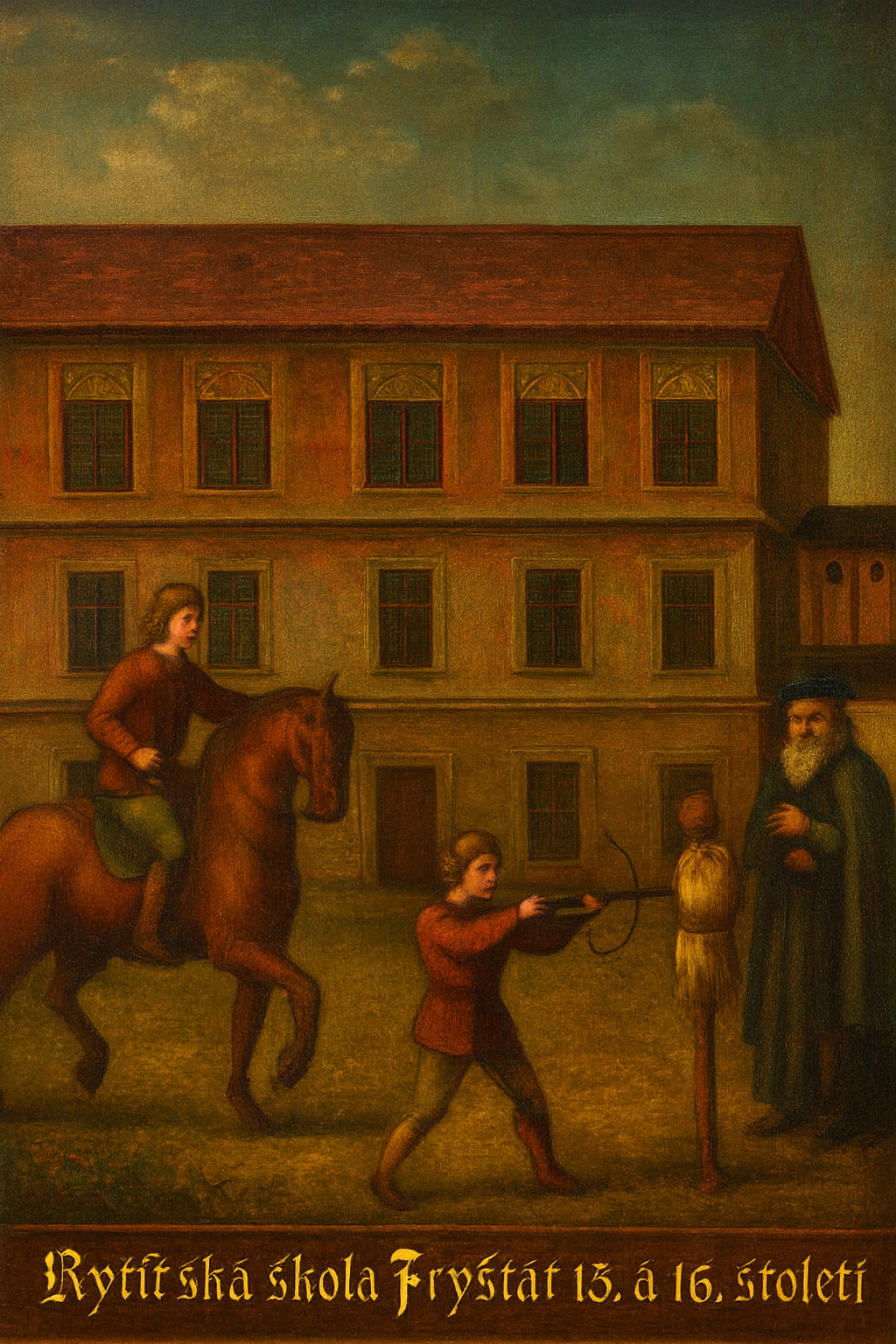 V zámeckém Purkrabství (Lottyhausu) probíhala i rytířská výuka. Rytíři ve Fryštátě získávali své rytířské vzdělání, což kromě jízdy na koni a ovládání zbraní, zahrnovalo také umění ovládat dobré mravy, cizí jazyky a samozřejmostí byla i výuka hudby, zpěvu, tance a společenské konverzace. Nešlo totiž o postavení rytíře jen jako bojovníka, ale i kultivovaného kavalíra. Vzdělávání rytířů probíhalo v zámeckém Purkrabství, dnešním Lottyhausu, kde jsou dochovány knížecí stáje, a na kolbišti, které bylo pod zámkem. S výukou chlapci začali už ve svém 7 roce. Vyučování vedl preceptor, což byl povětšinou starší, vysloužilý rytíř ve službách slezských knížat. Jako mladí chlapci se nejprve učili ovládat meče a nacvičovali si to s dřevěnými náhražkami. Kolem 15. roku se z chlapců stávali panoši, a to již uměli dobře jezdit na koni a přitom v jedné ruce držet a ovládat zbraň, např. za jízdy stříleli z kuše na hadrového panáka. Když studující mládenci dovršili 21. rok, byli už připraveni na rytířské pasování. Pasování na rytíře byl velmi slavnostní obřad. Začal hned ráno obřadní koupelí a po ní, když panoše oblékli do slavnostního oblečení, konala se k té příležitosti mše ve fryštátském zámeckém kostele, které se zúčastnili. Do kostela chodili každý den, ale teď byla mše konaná jen pro ně... Pak probíhalo pasování. Mohlo probíhat jednotlivě, ale většinou bylo společné před zahájením rytířského turnaje, kterého se nově pasovaní rytíři mohli také poprvé účastnit. Rytířský turnaj vždy zahájil Jeho Milost slezský kníže a každé jednotlivé rytířské klání začínalo troubením trubačů. Vítěz každého rytířského klání získal vybavení toho koho porazil. Mnohdy i jeho koně a poraženého samotného, kterého pak za výkupné propouštěl. Čím výše urozený poražený rytíř byl, tím vyšší výkupné vítěz požadoval. Rytíři však soupeřili i o přízeň přítomných dam, ale to bylo trnem v oku fryštátských duchovních, kteří v takových turnajích viděli jen příležitosti mládenců hřešit s mladými dívkami. Především šlo ale o zábavu, které se s chutí zúčastňovali i panující knížata a diváci se tady bavili a povzbuzovali rytíře k výkonům.