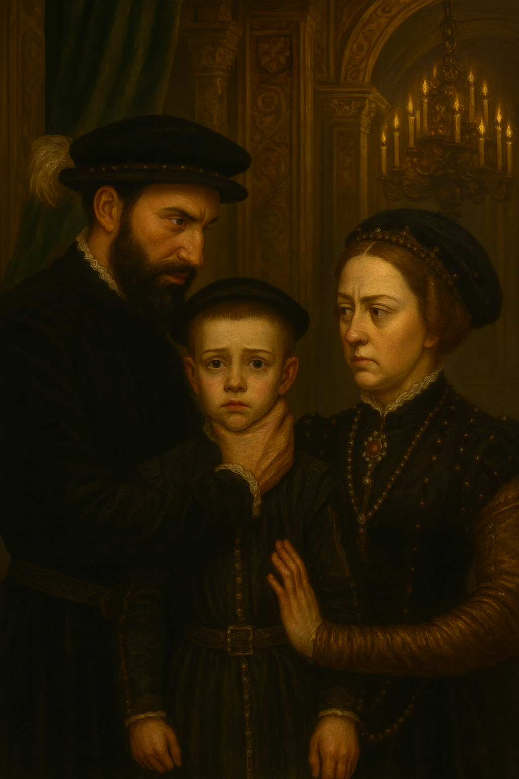 Pardubickým zámkem procházejí bolestné výkřiky vévodkyně Marie, dcery majitele zámku Jana IV. Pernštejna. Vévodkyně je tady už několik týdnů a rozhodla se porodit své první dítě právě tady, doma v Pardubicích. Na sídle svého muže, slezského vévody Václava III. Adama z Těšína se necítí dobře a navíc je tam neustále z jeho strany ponižována. Tady je jí dobře. Porod není komplikovaný, jde to celkem dobře, ale přesto jsou její výkřiky ohlušující. Alespoň se to v tom jinak tichém a napjatém očekávání potomka na zámku takto jeví. Je to tady. Vévodkyně Marie porodila dítě a má to za sebou. Narodil se jí krásný chlapeček, dědic a následník trůnu. To je opravdu radostná zpráva a Mariin otec se cítí být povinnován tuto zprávu ihned oznámit minimálně na třech aristokratických dvorech. Sám však stále pamatuje na dobu, kdy slezskému vévodství vládl jako regent, a panovnickou moc měl na dosah ruky. Narození vnuka vzaly jeho tehdejší křivé plány za své, a jeho sen o vládě nad Slezskem se tím definitivně rozplynul. Prvního posla posílá do Vídně na císařský dvůr. Císař Maxmilián II. Habsburský zprávu o narození slezského dědice přijímá s rozpaky. Prastará slezská panovnická dynastie je už na pokraji vymření, čímž by císař získal vymřelé léno jako majetek, ale narození dědice dosažení tohoto plánu oddálilo na neurčito. Snad kdyby malý princ zemřel..., úmrtnost dětí je vysoká... Druhý posel je vyslán do slezského sídla v Těšíně. Otce malého prince však zpráva o narození syna dědice zastihla v nevhodnou dobu - vévoda se právě ve své komnatě oddává milostným choutkám se svou dvorní milenkou a zprávu přijímá jen jako informaci, která mohla počkat... Až později si uvědomí, že má syna. Syna, který je už teď předurčen k vládě, kterou otci přebere dříve než by chtěl. Syn dědic se náhle ve vévodových očích mění v syna konkurenta, a tato vidina ho začíná zneklidňovat. Třetí posel dorazil do Dolnoslezského sídla v Lehnici. I zdejší vévoda Fridrich III. netrpělivě čeká až se dozví, jestli příbuzný Těšínský dvůr bude mít prince nebo princeznu. První varianta pro vévodu z Lehnice znamená blížící se konec jeho nadvády ve Slezsku. Dobře si totiž uvědomuje výhodnější pozici Těšínského dvora a syn dědic se ve Slezsku dříve nebo později ujme dominantní vlády. Zpráva o narození syna dědice ho sice nepřekvapuje, ale teď aspoň ví na čem je. Rychle vymyslet plán, jak získat nad princem kontrolu. A má to. Jeho žena, vévodkyně Kateřina Maklenburská je také těhotná. Brzy porodí potomka. Bude-li to dcera, musí vévoda z Lehnice vymyslet plán, jak ty dva spojit sňatkem. O dva měsíce později se vévodovi opravdu narodí krásná dcera, a dostává jméno po své matce Kateřině.