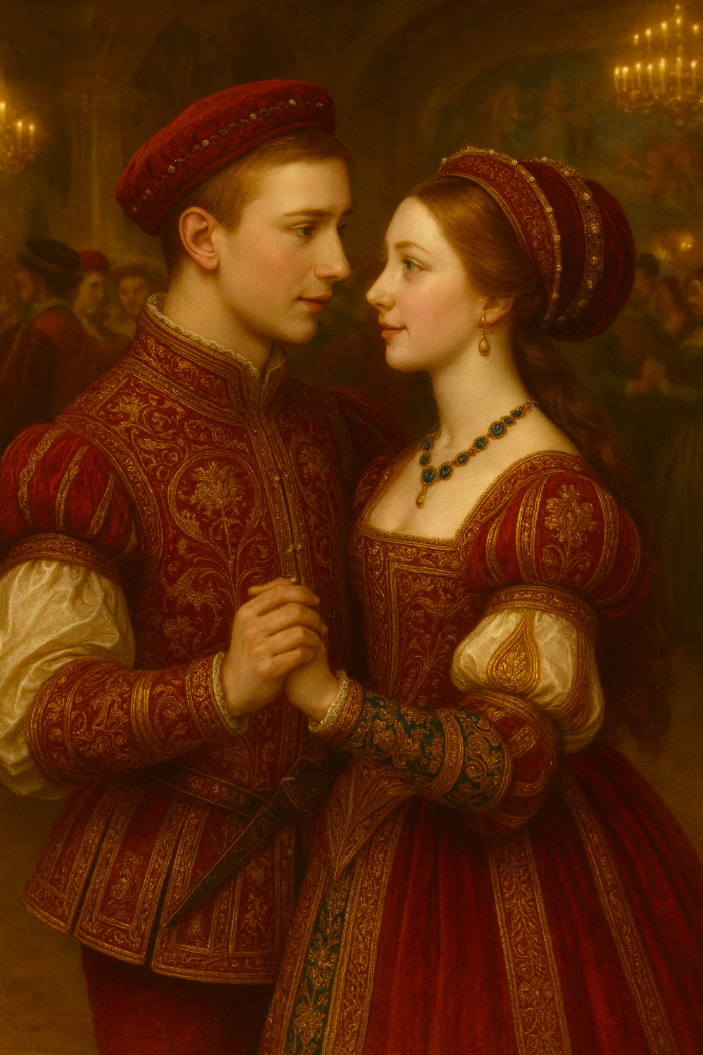 V létě roku 1556 má princ Fridrich už 15 let a jeho otec, vévoda Václav III. Adam dokončuje opravy svého sídla v Těšíně a ve Fryštátě se připravuje na stěhování dvora zpátky do Těšína. Vévodkyně Marie se však rozhoduje zůstat ve Fryštátě. Tady je jí lépe, nechce se vracet do míst, které jako domov nikdy nepřijala. Ve Fryštátě se jí líbí a bez svého manžela tady bude více samostatná. Právě v tomto čase také princ Fridrich dostává povolávací listinu, aby se dostavil na Lehnický dvůr svého strýce, Jeho Milosti Fridricha III. Po příjezdu prince Fridricha na Lehnický dvůr, je princ Fridrich oficiálně dvoru představen a je princi také oznámeno, že na zítřejším plese bude zasnouben s princeznou Kateřinou, dcerou Jejich Milostí vévody Fridricha III. a vévodkyně Kateřiny Maklenburské. Druhý den se zásnubní ples koná ve velkém tanečním sále Lehnického zámku. Sál je osvícen mnoha mosaznými svícny, v rohu sálu je umístěné vyvýšené pódium s muzikanty, kteří jsou připraveni na vévodův povel začít hrát, po stranách tanečního sálu již netrpělivě čekají do špalíru seřazení dvořané a na konci špalíru je vévodský trůn, před kterým stojí Její Milost vévodkyně Kateřina s dcerou, princeznou Kateřinou a princem Fridrichem. Napětí v sále stoupá a čeká se už jen na příchod Jeho Milosti vévody Fridricha III. Konečně zámecká dvorní stráž otevírá dveře sálu a je ohlášen příchod vévody. "Jeho Milost Dolnoslezský vévoda Fridrich III.!", oznámí všem přítomným vévodův dvorní Sekretář. Vévoda Fridrich III. vstoupí do sálu a velmi noblesně a mocensky prochází středem špalíru k vévodkyni. Jak jde, dvořané mu skládají hlubokou úklonu. Vévoda Fridrich III. přichází k vévodkyni Kateřině a s nabídnutou dlaní ji vyzve k doprovodu ke slezskému trůnu. Vévoda vévodkyni usadí na trůn, přijme hold princezny Kateřiny i hold prince Fridricha a také od u trůnu přítomných dvořanů. Na to se vévoda Fridrich III. posadí na trůn a usednout můžou i dvořané. Ze svého trůnu vévoda rukou pokyne muzikantům, aby začali hrát a tím vévoda Fridrich III. zahajuje zásnubní ples své dcery Kateřiny. Když vévoda vstane z trůnu, vstanou i sedící dvořané, ale členové jeho rodiny zůstávají sedět. Vévoda Fridrich III. přichází ke své dceři a vyzve ji k tanci: "Madam, protože je toto Váš ples zásnubní, prokažte mi tu čest zahájit ho s Vámi." Princezna Kateřina vstane, ukloní se svému otci, čímž projeví svůj souhlas a položí svou dlaň na nabídnutou dlaň svého otce. Vévoda Fridrich III. tak odvádí svou dceru na taneční parket a začínají tančit. Tančí jen oni dva. Otec vévoda s dcerou princeznou. Ostatní dvořané nadále stojí ve špalíru a s nadšením je sledují. Ostřím zrakem je sleduje i princ Fridrich a vévodkyně Kateřina, a oba neskrývají svou hrdost a štěstí.