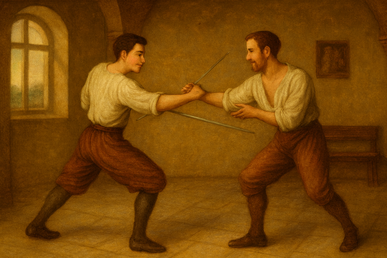 Vyvrcholením svatební oslavy se však stává velkolepý rytířský turnaj, jehož hlavní dominantou a ozdobou celé svatební oslavy je vévodova nová věž s erbem rodu slezských Piastovců. Turnaje se s chutí účastní i sám vévoda Fridrich a s nadšením bojuje pro čest své novomanželky, vévodkyně Kateřiny. Nasedá na svého koně oděného do modrozlatých barev vévodství Horního Slezska a na svém dřevci má šerpu s červeno a černozlatými barvami, které má ve svém erbu Dolnoslezský rod otce vévodkyně Kateřiny. Na fryštátském náměstí se Fridrichův kůň rozbíhá vstříc koni se zkušeným rytířem Václavem Bolkovským z Bolkovic. Napřahují proti sobě dřevce a Bolkovského dřevec zasahuje vévodu Fridricha až spadne z koně na zem. Všichni hlasitě vzdechnou a u hodovního stolu vévodova rodina s napětím vstane ze židlí a čeká co se bude dít. Je vévoda Fridrich zraněn? To by bylo velmi nemilé, zvlášť v den svatebních oslav. Když rytíř Bolkovský sesedne z koně a s pomocnou rukou přijde k na zemi ležícímu vévodovi, vévoda k překvapení a úlevě všech přítomných vstane a postaví se na nohy. "Sire, jste v pořádku?", ptá se rytíř Bolkovský. Vévoda Fridrich ocení podanou ruku rytíře Bolkovského, ale svému pádu z koně se začne smát až rozesměje i všechny ostatní. "Tohle bude chtít revanš!", odpoví vévoda Fridrich a s úsměvem nasedne zpátky na koně. "Prosím, Sire, netrvejte na odvetném klání. Oba jsme velmi unaveni", odpoví rytíř z Bolkovic. Jenže to už trubači troubí výzvu k dalšímu klání pro rytíře Jiřího z Rocnova a rytíře Petra z Pelkova. Jejich koně se rozbíhají proti sobě, rytíři proti sobě míří svým dřevcem a když koně kolem sebe proběhnou, dřevce oba rytíře jen o chlup minou. Obecenstvo nadšeně jásá a povbuzuje své oblíbené rytíře k dalšímu výkonu. Rytíři tedy sesedají z koně a z holí v ruce jdou proti sobě. Chvíli bojují, aby na sebe strhli veškerou pozornost, ale když je stav stále nerozhodný, odhodí své hole a začnou se svému výkonu nahlas smát a i oni rozesmějí celé náměstí. Chtějí zachránit dojem z vévodova pádu z koně a ušetřit ho jeho riskantního odvetného klání. Obecenstvu tím rytíři vnuknou myšlenku, že tyto hry jsou především zábavou, kterou vévoda Fridrich rozhodně nezkazil. Čest vévody je zachráněna i bez dalšího jeho klání. Vévoda Fridrich se při pádu z koně zachoval velmi diplomaticky a celou věc dokázal obratně vyřešit v rámci sportovního ducha a zábavy. Je krásný jarní den a u obecenstva si vévoda tímto svým počinem získal hlubokou úctu a velkou oblibu.