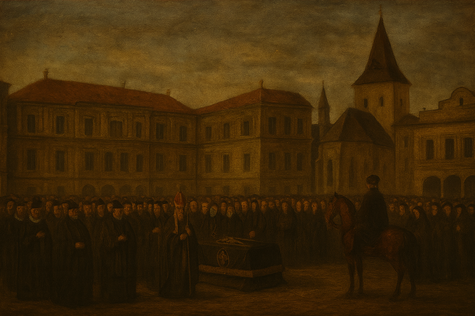 Dne 4. května roku 1571 zemřel u Pardubic Jeho Milost, vévoda Horního Slezska Fridrich Kazimír Piast, princ Fryštátský. Jeho tělo pan Maršálek dočasně uložil v pardubické rodové hrobce Pernštejnů, kde už od roku 1566 odpočívá i vévodova matka, vévodkyně Marie z Pernštejna. Naposledy byli spolu v Pardubicích, když se malý princ Fridrich tady na zámku narodil. Teď jsou tady opět spolu. Vévoda si však přál být se svou ženou, vévodkyní Kateřinou ve Fryštátě. Fridrichův otec, vévoda z Těšína, však nikdy nezařídí převoz Fridrichova těla do Fryštátu, ani do Pardubic nepošle náhrobek k uctění památky svého syna. Svou zášť k synovi nedokáže překonat ani po jeho smrti.