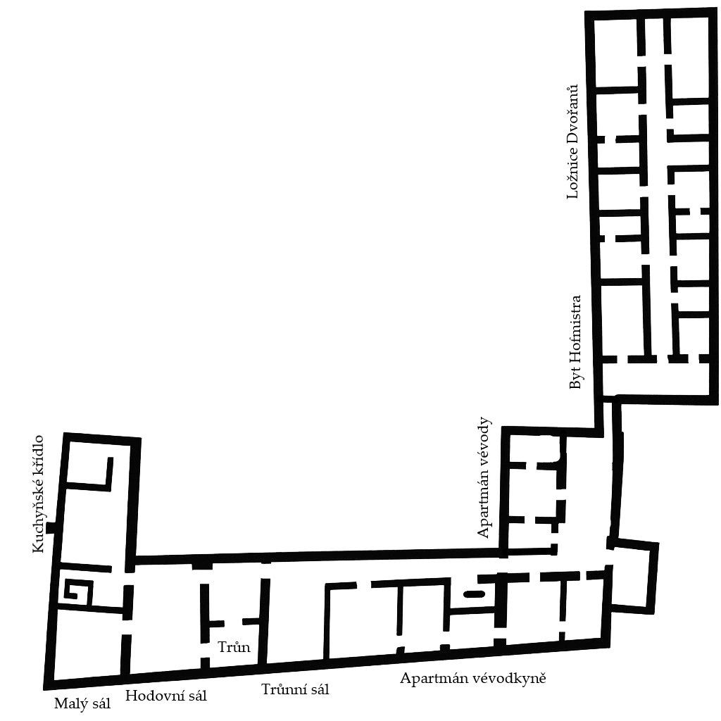 Věž však v letech 1511 až 1514 zrušil Fridrichův praděd, slezský Vicekrál Kazimír II. při přestavbě gotického zámku v renesanční rezidenci. Věž sice zanikla tím, že byla snížena, ale její přízemí stále slouží jako zbrojnice a suterén jako vězeňské cely. Ve zbrojnici jsou dodnes umísťené zbraně jako jsou meče, tesáky, kopí, sudlice, sekery, cepy, palcáty, řemdihy a kladiva, které udržuje v pohotovosti zámecká vojenská stráž. Uchovává se zde i osobní zbroj, kterou tvoří přilby, brnění chránící vojákovu hruď, kroužkové košile, prošívanice i plátová zbroj, štíty a součásti chránící ruce a nohy. Od doby zrušení obranné věže však nově vzniklý Malý sál slouží výhradně vévodské rodině, kde si spolu povídají o tom co kdo během dne dělal, společně si zpívají nebo hrají stolní či míčové hry. Vévoda Fridrich rád malé princezničce předčítá z knih nebo si s ní hraje a dovádí jako kluk. Vévodkyně Kateřina je moc ráda při tom pozoruje. V Malém sále jsou všichni šťastní, protože tady jsou jen pro sebe. Když jsou unavení, jdou spát každý do své komnaty. To vévodkyně zavolá jednu z dvorních dam a ta malou princezničku uloží do postele. Vévodští rodiče jdou spát často až pozdě v noci. A ikdyž se uchýlí každý do své komnaty, netrvá to dlouho a vévoda jde k vévodkyni do její komnaty na svou noční návštěvu...